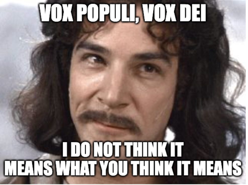 Nec audiendi qui solent dicere, Vox populi, vox Dei, quum tumultuositas vulgi semper insaniae proxima sit.