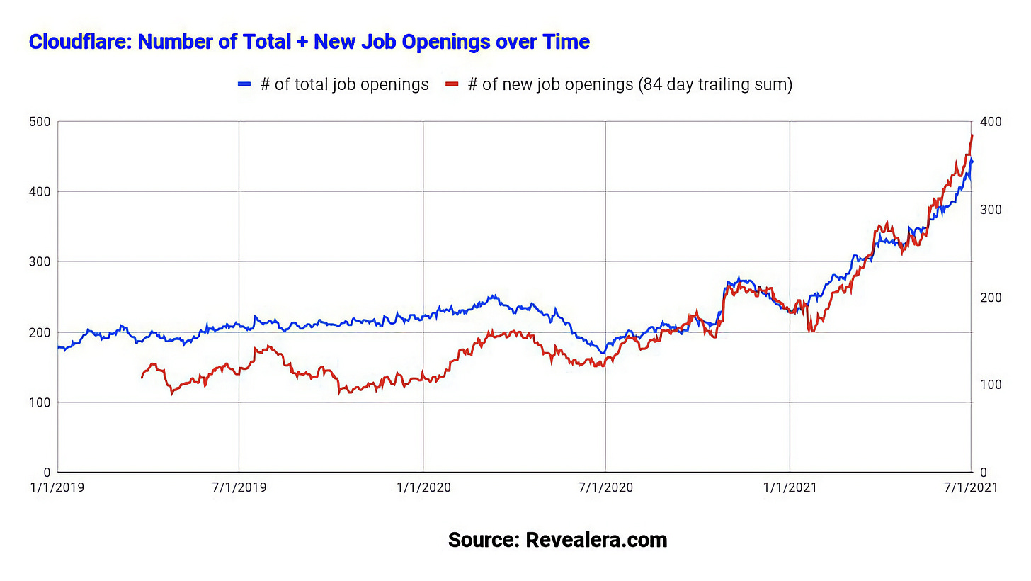 Get answers to questions like: “Is Cloudflare planning to hire more salespeople this Q?” or “Is AWS gaining market share against Azure in the job market?”