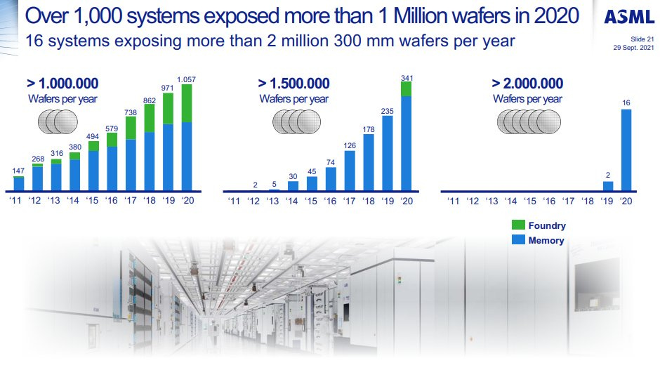 Another amazing slide showing how ASML's installed base pumps out more wafers every year. An underappreciated aspect of how semi fabs are able to drive costs down year after year and why we can expect the EUV per wafer cost to keep coming down as the tech matures.