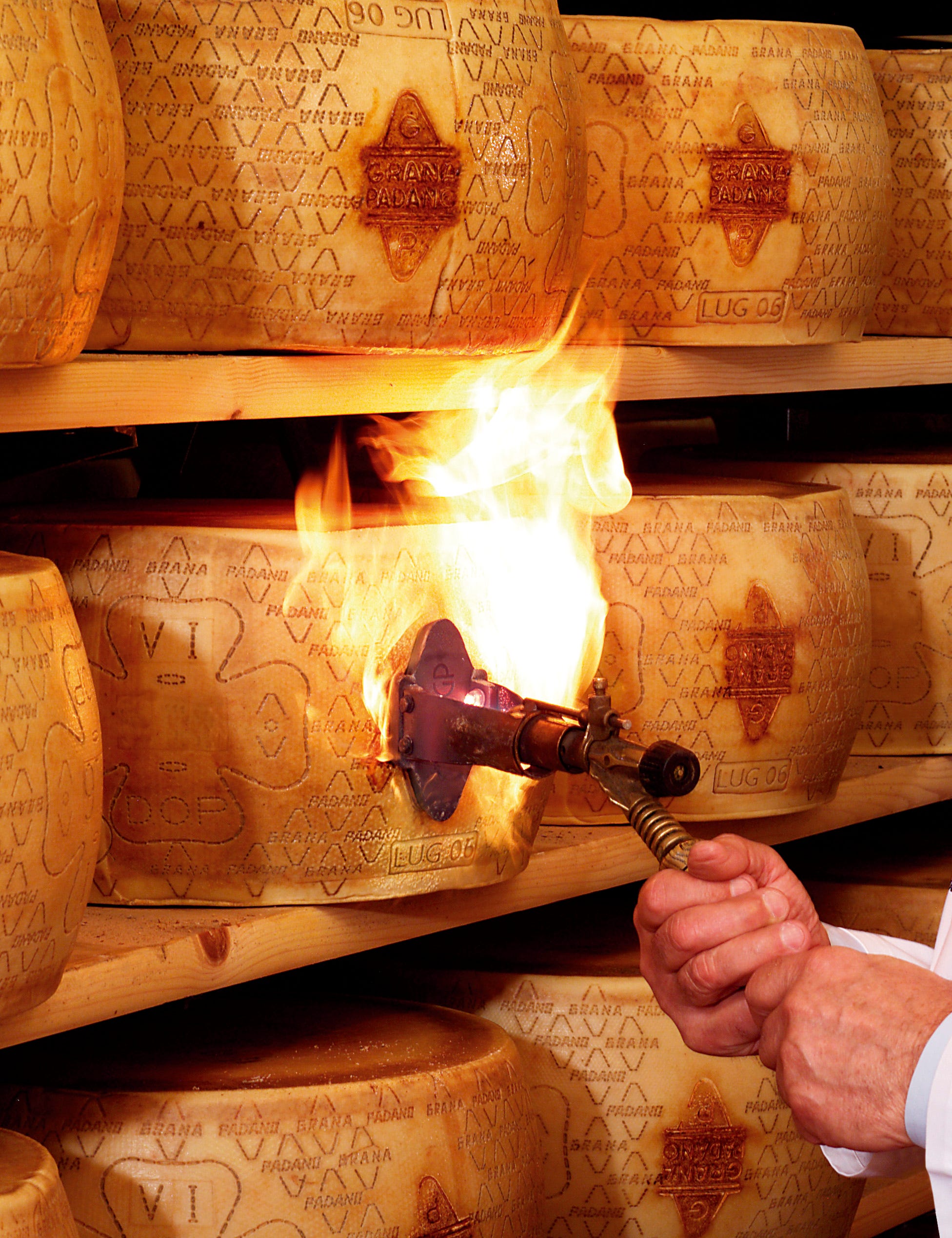 I can’t close without showing you this badass picture of how they stamp Grand Padano (who knew cheese-making was this cool, eh?):