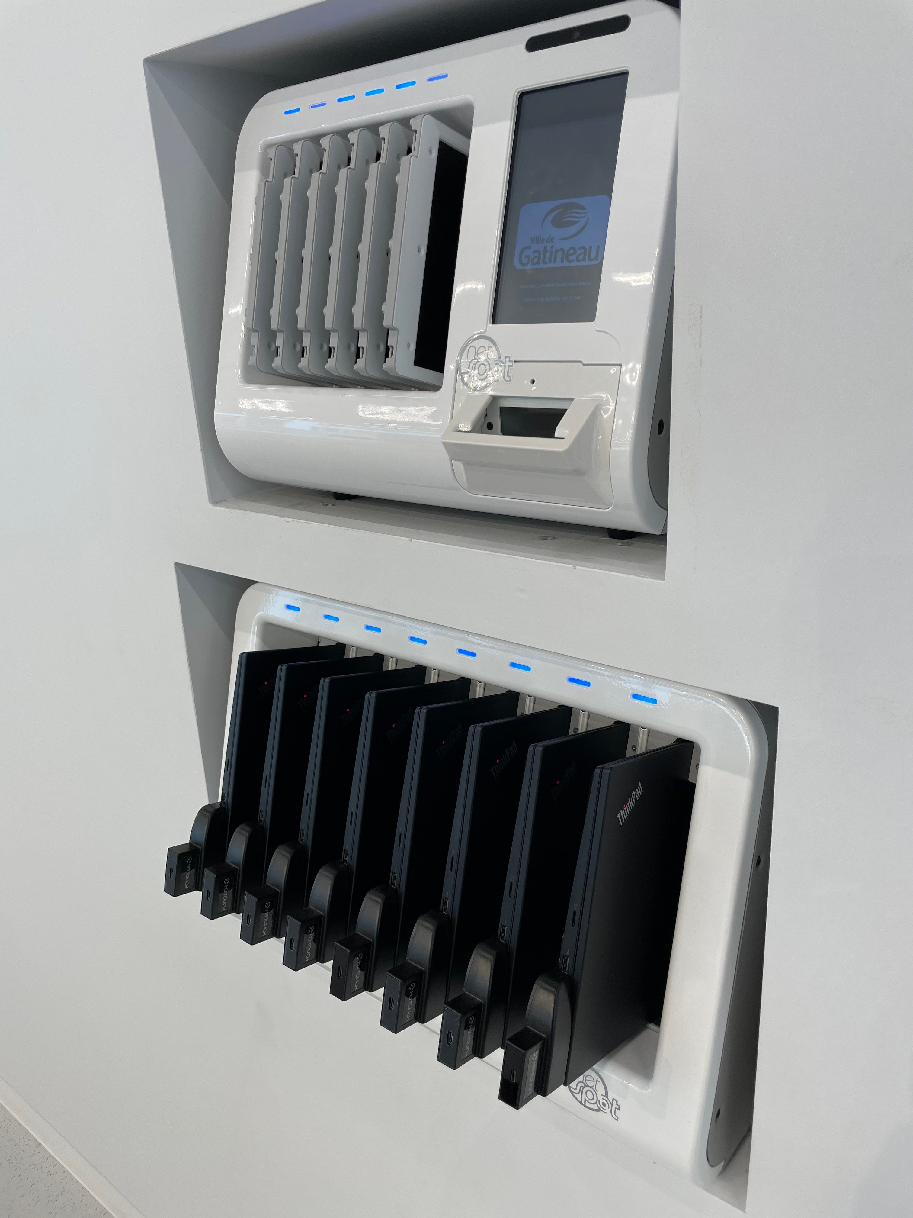 💻 Maybe I just don’t go out much, but it’s the first time I see one of these “vending machines” where you can borrow a laptop or a tablet in a public library. Feels straight out of the Robocop universe.