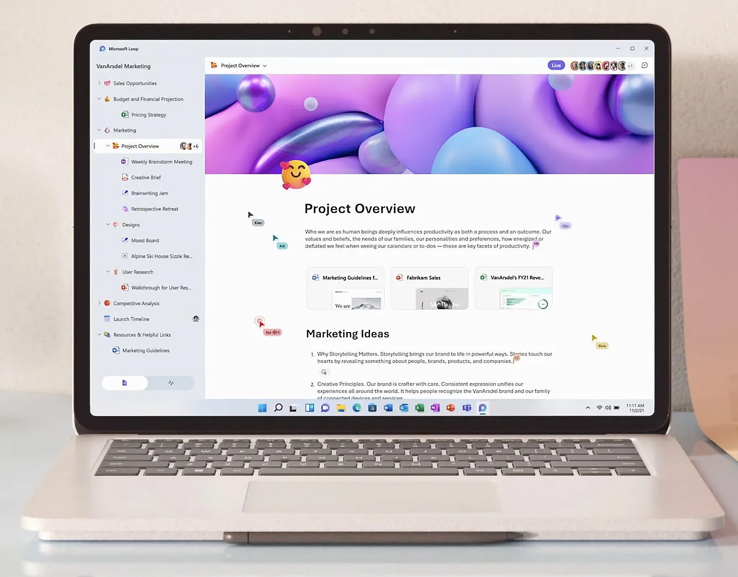 Loop pages are the individual canvases where people can share and collaborate on Loop components. It’s like a modern version of a whiteboard but far more powerful because you can insert and share components that people have created outside of Loop. Not everyone even needs to be part of the entire Loop page, as the individual components could be edited in real time from other apps. (Source)