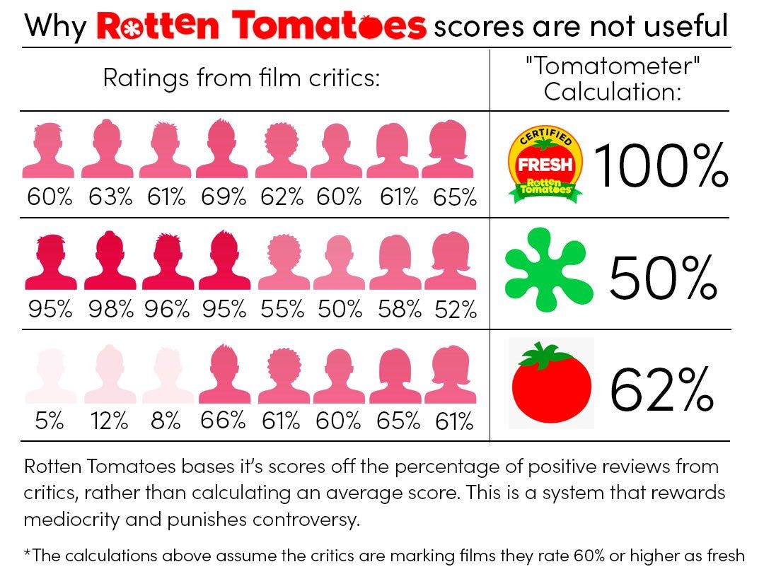 By that I mean that some films draw a very self-selected audience, so them getting a very high score tells you that you’re likely to like it *if* you’re part of that audience (ie. super-hero movies. Maybe Avengers Metroid Prime or whatever got 8.7/10, but if you don’t like Marvel’s films, it doesn’t tell you much).