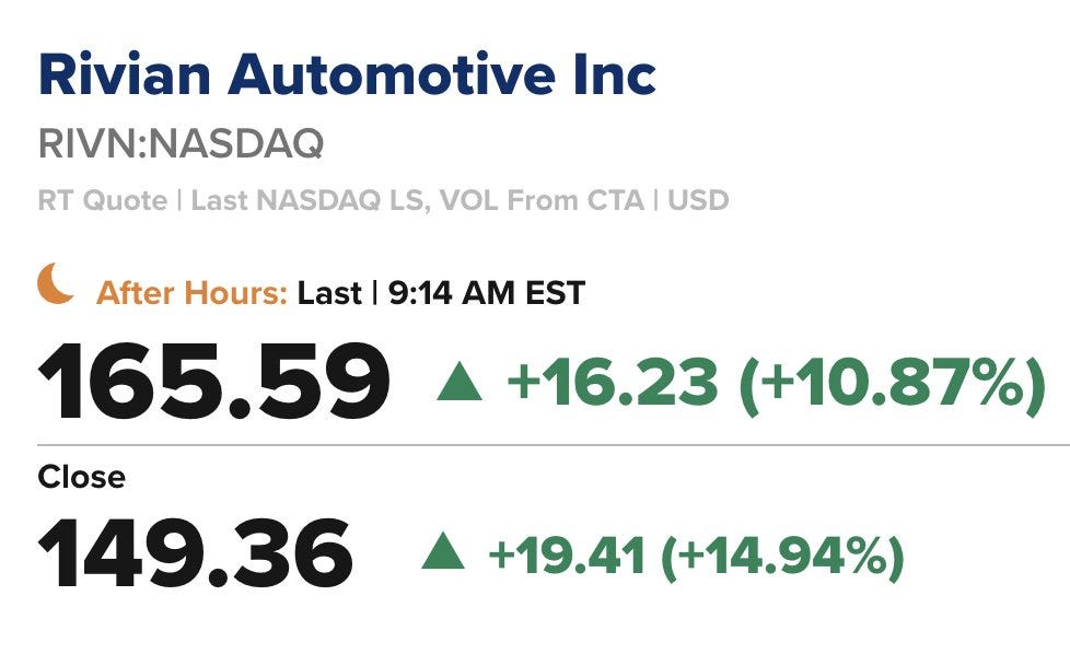 A few days after IPO, and Rivian stock has taken off like a SpaceX rocket (wow that’s a terrible analogy, it’s like a grade school kid wrote this..).