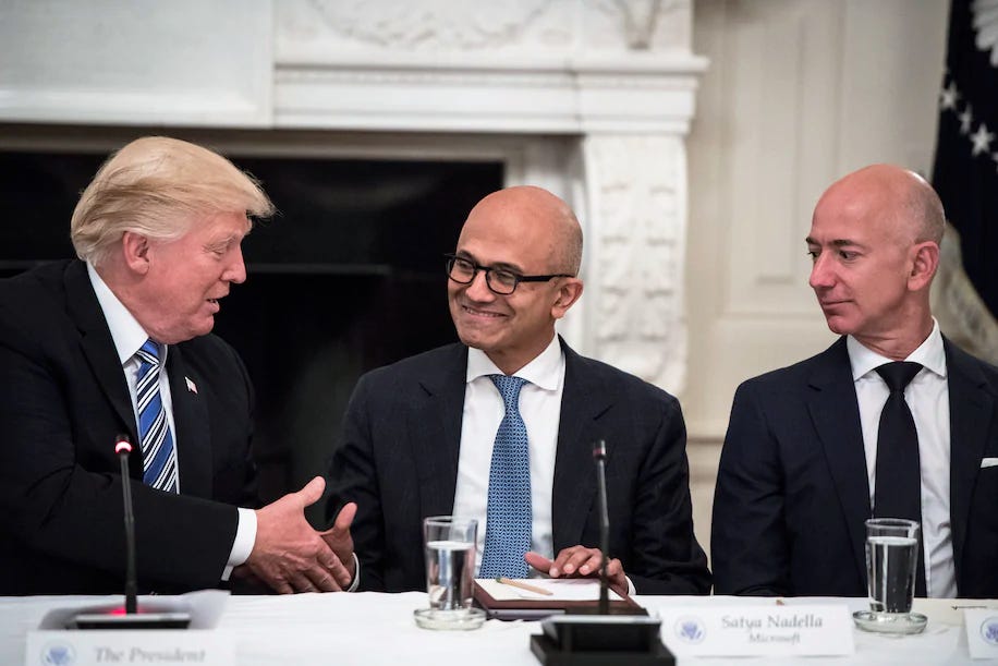 Under government procurement rules, politicians are not supposed to steer government work toward or away from specific companies, but Trump had taken a direct interest in JEDI, saying on television that he would ask defense officials to take a closer look at the procurement strategy. (Source)