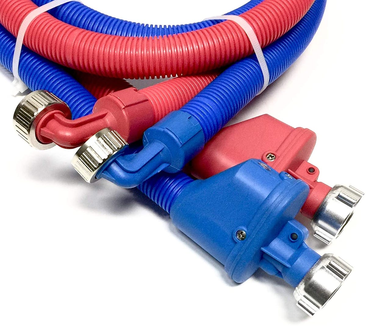These hoses have a shut-off mechanism at one end as an added safety feature. If the hose bursts, the connector can sense the water pressure change and it stops the flow of water. This auto-shutoff device can mean the difference between a little water on the laundry room floor and extensive flood damage.