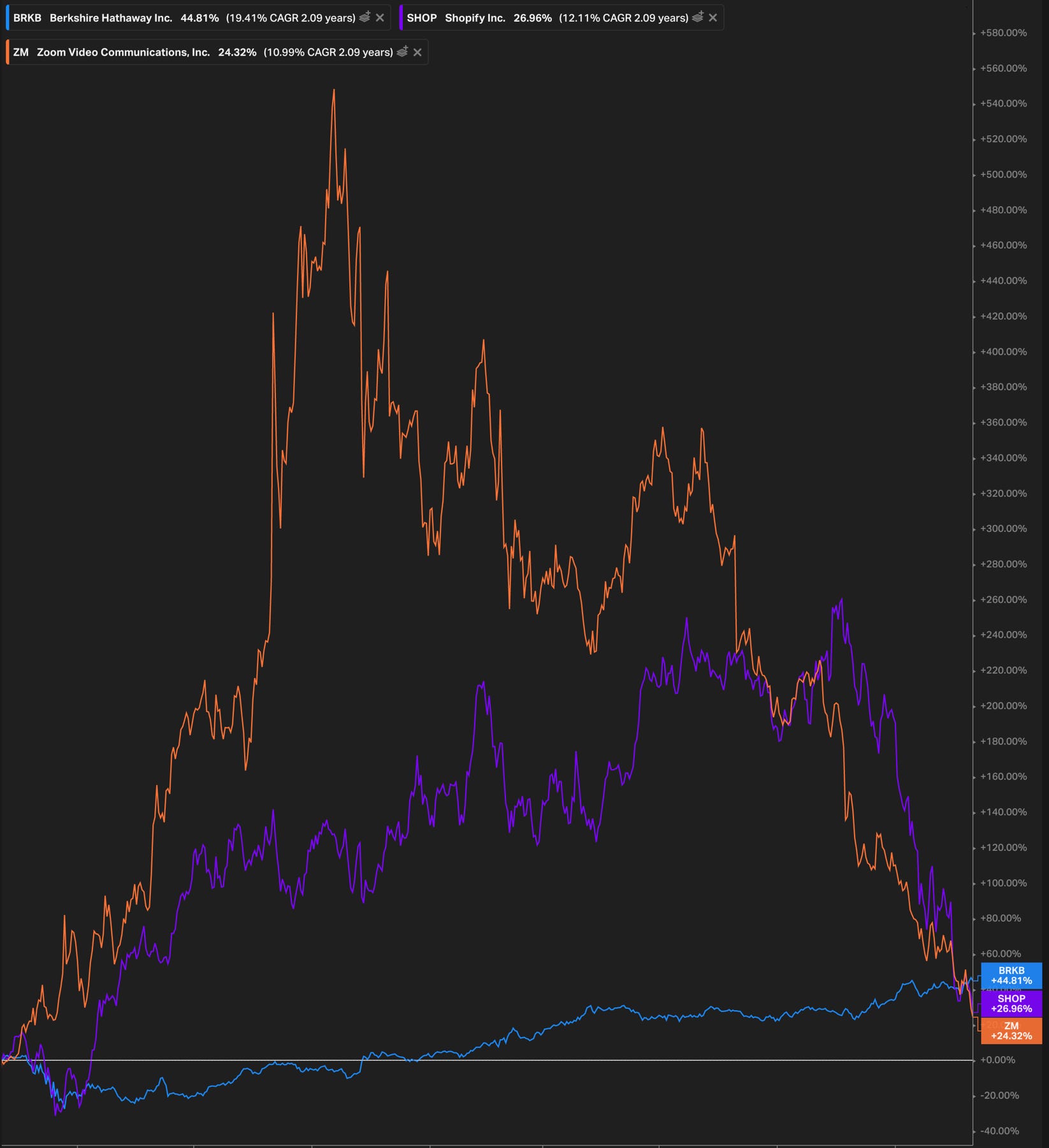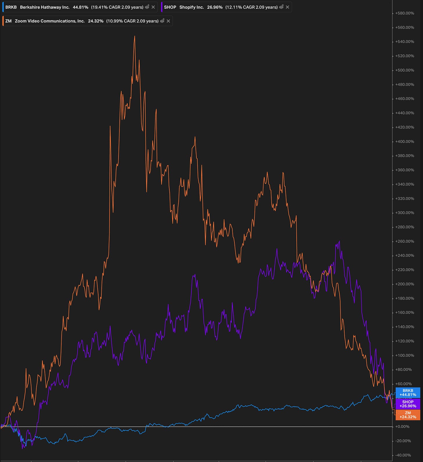 Since the start of the pandemic 2 years ago, $BRK.B has now significantly outperformed $ZM, $SHOP and a number of other Covid winners. Just amazing when you think about it. It's a real life tortoise vs hare result