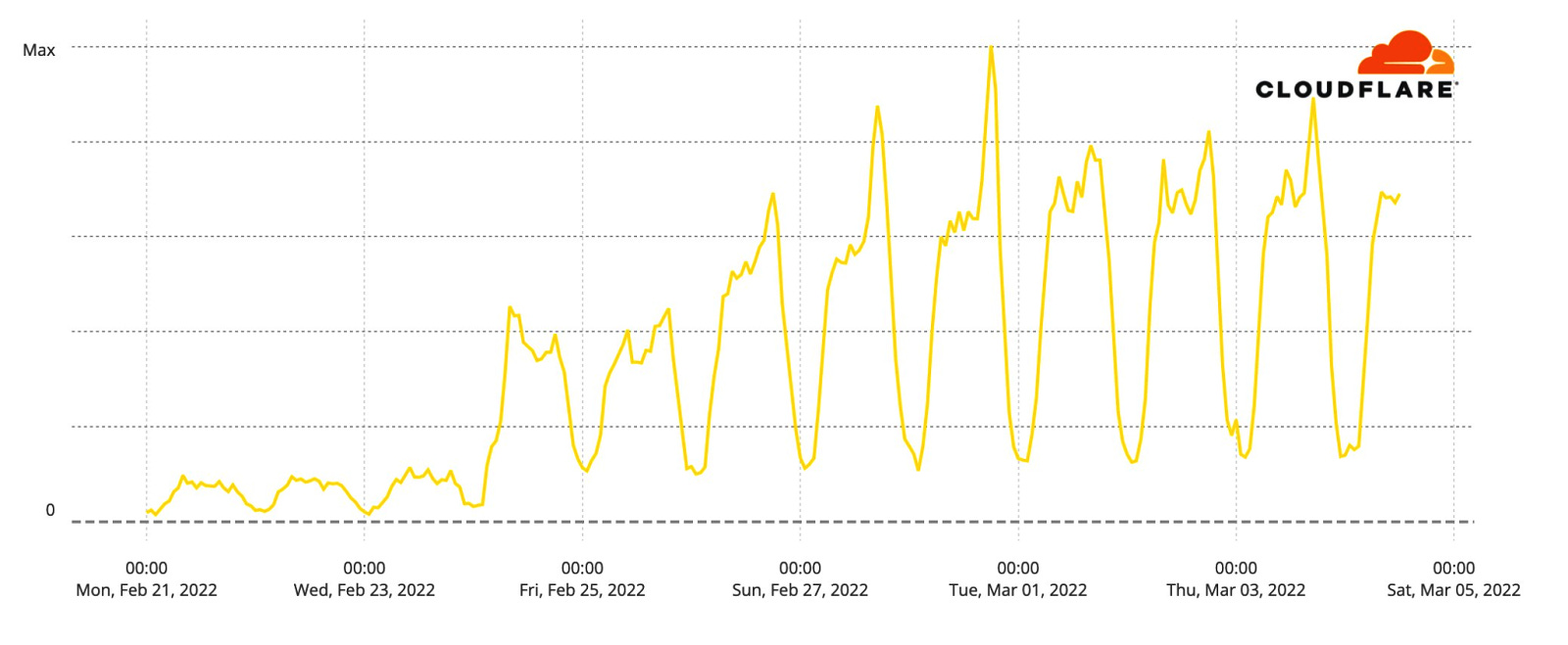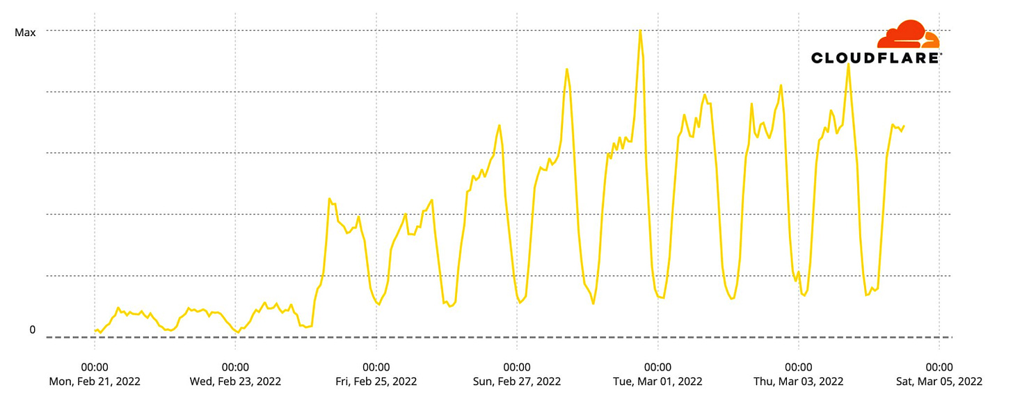 Cloudflare has a blog post about internet traffic & cyberattack patterns in Ukraine during the past couple weeks.