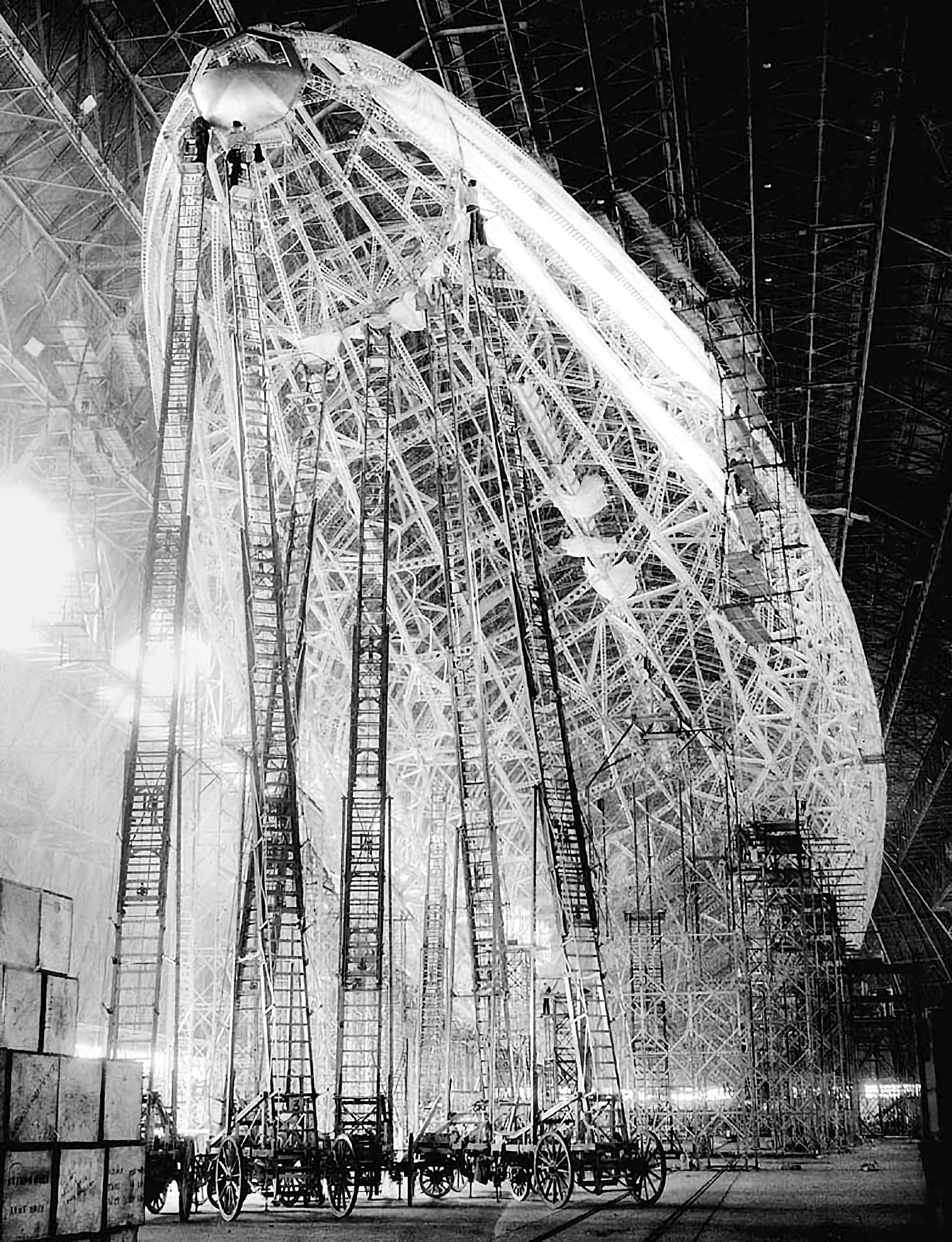 Above is the USS Macon under construction at the Goodyear-Zeppelin Airdock in Akron, Ohio. Construction began in 1931 and it was commissioned in 1933.