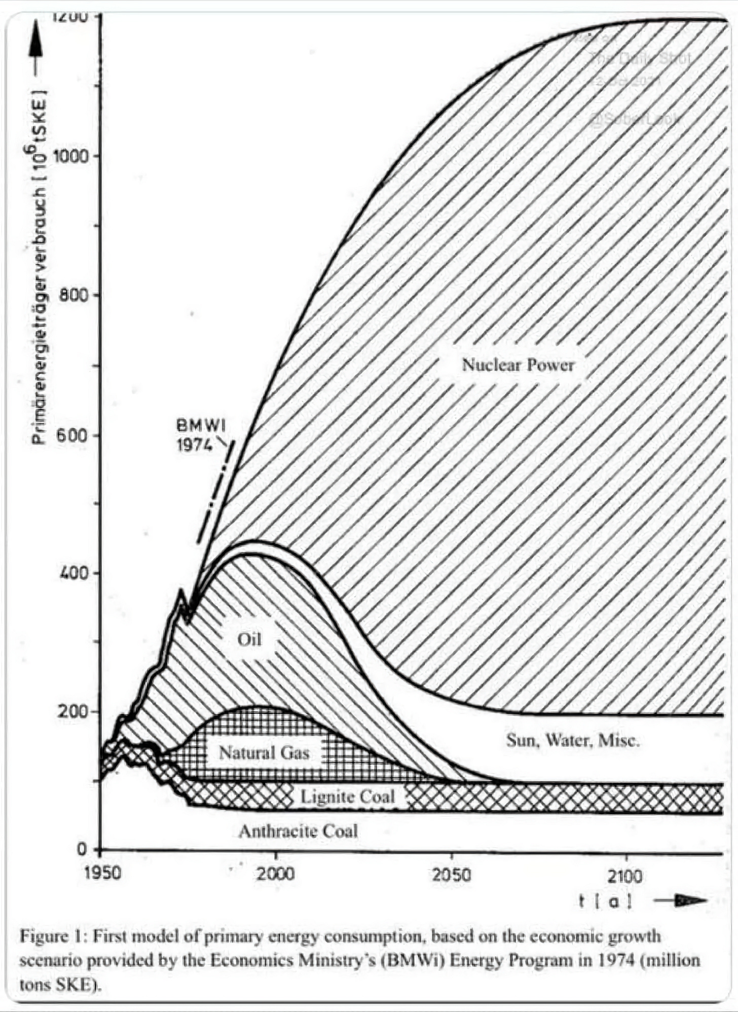 Caption: West Germany's government's forecast for energy mix from 1974 before it was hijacked by the irrational fear of nuclear power