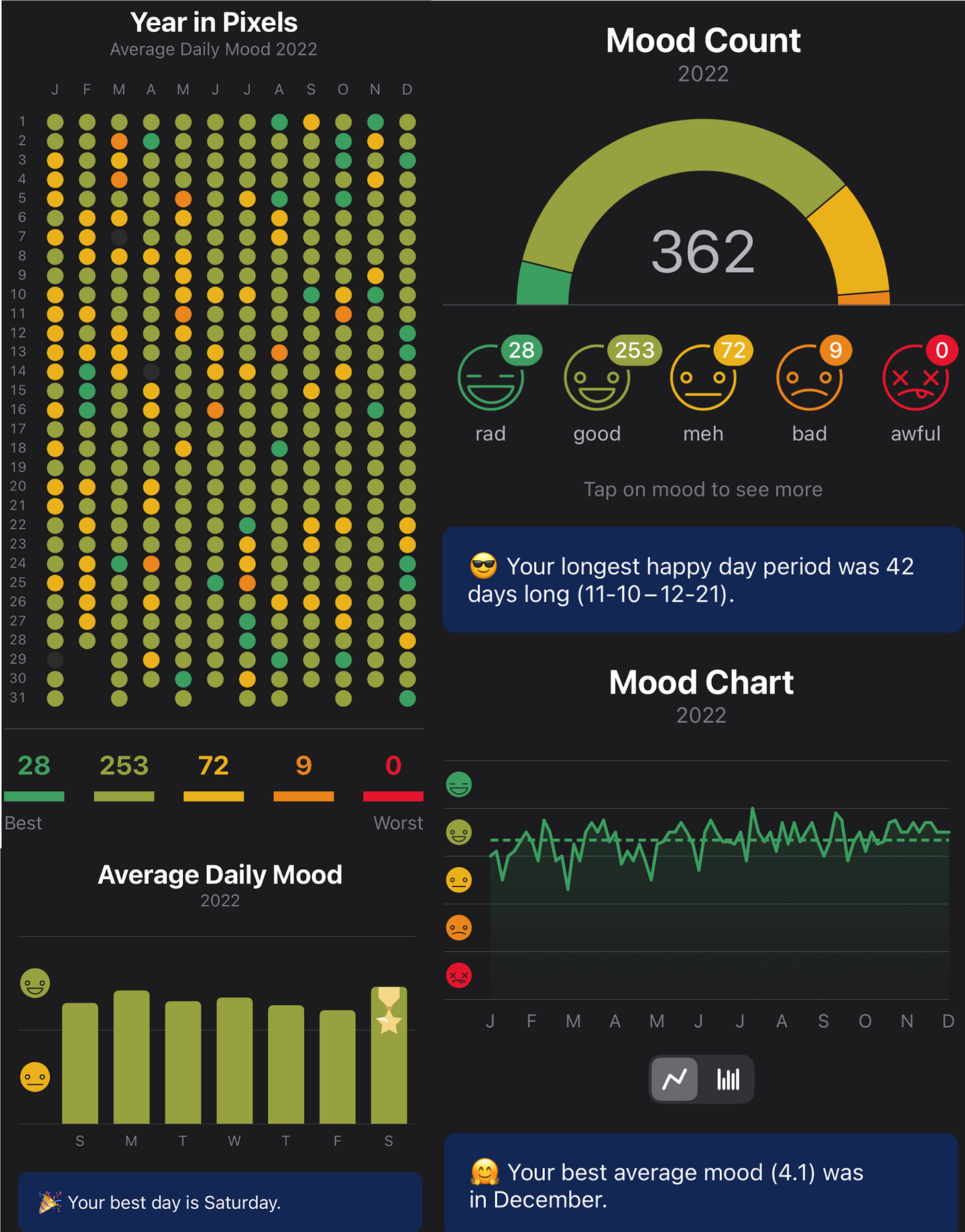 🗓️😁😐😔📲 I have been using a mood-tracking app for a few years. The one I use is called Daylio, but I’m sure there are many others.