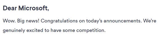 Context below, for those who don’t know of Slack’s 2016 full-page advertisement in the NYT giving Microsoft “advice” on its competing product, Teams.