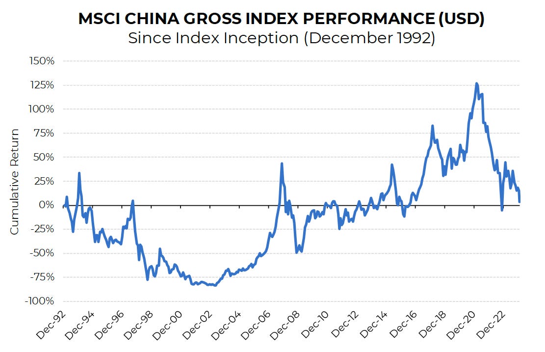 The Chinese economy is ~13x larger and an investment in it has gotten you the same return as if you put your cash under your mattress