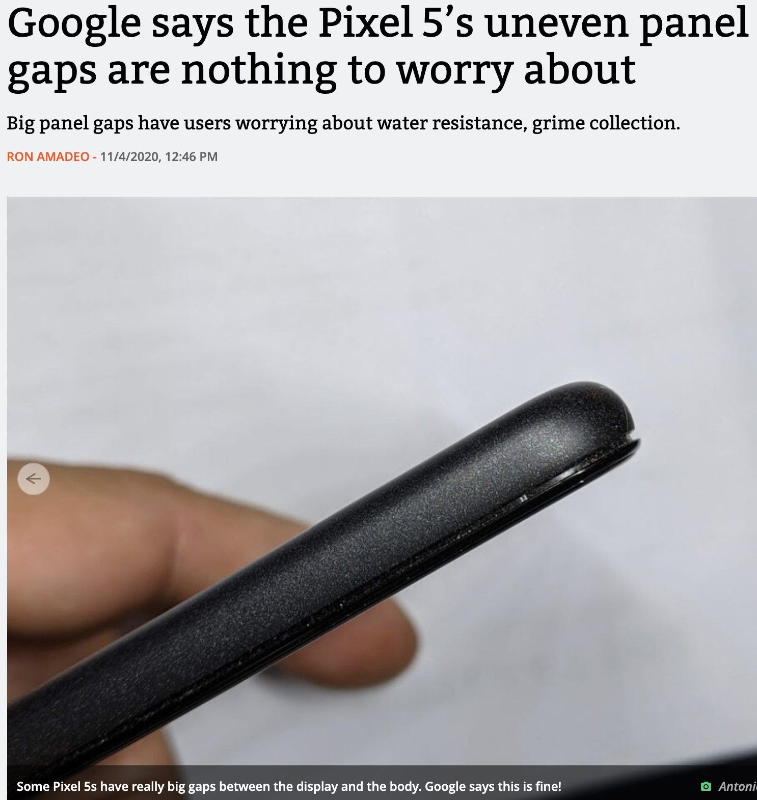 Google: "we can confirm that the variation in the clearance between the body and the display is a normal part of the design of your Pixel 5"