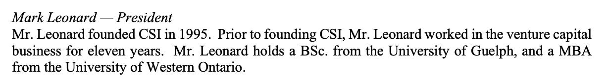 I’d swear it’s Mark Leonard, but looking at the filings and the website, they only refer to him as “president” and every other reference to a CEO or Chief Executive Officer is for the operating groups. Mark also has the shortest bio of anyone with no reference to his tenure as CEO: