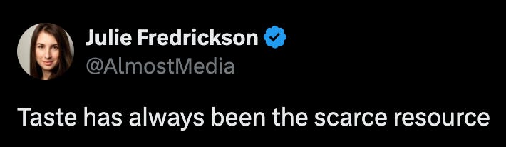 If you took Denis Villeneuve’s whole team but put a director with *terrible* taste in charge, the result probably wouldn’t be very good. But if you gave Denis a small budget and a team of average talent right out of film school, he could probably figure out a way to do something good with them.
