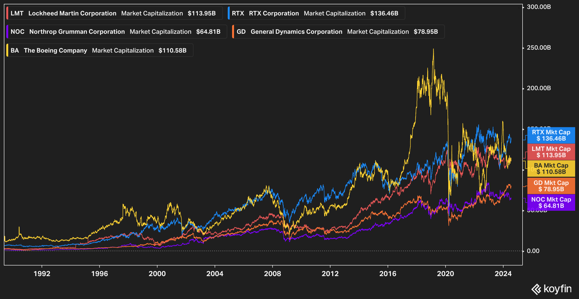 Boeing (who also has a large civilian presence) is around 110, but as you can see, they peaked around $250bn