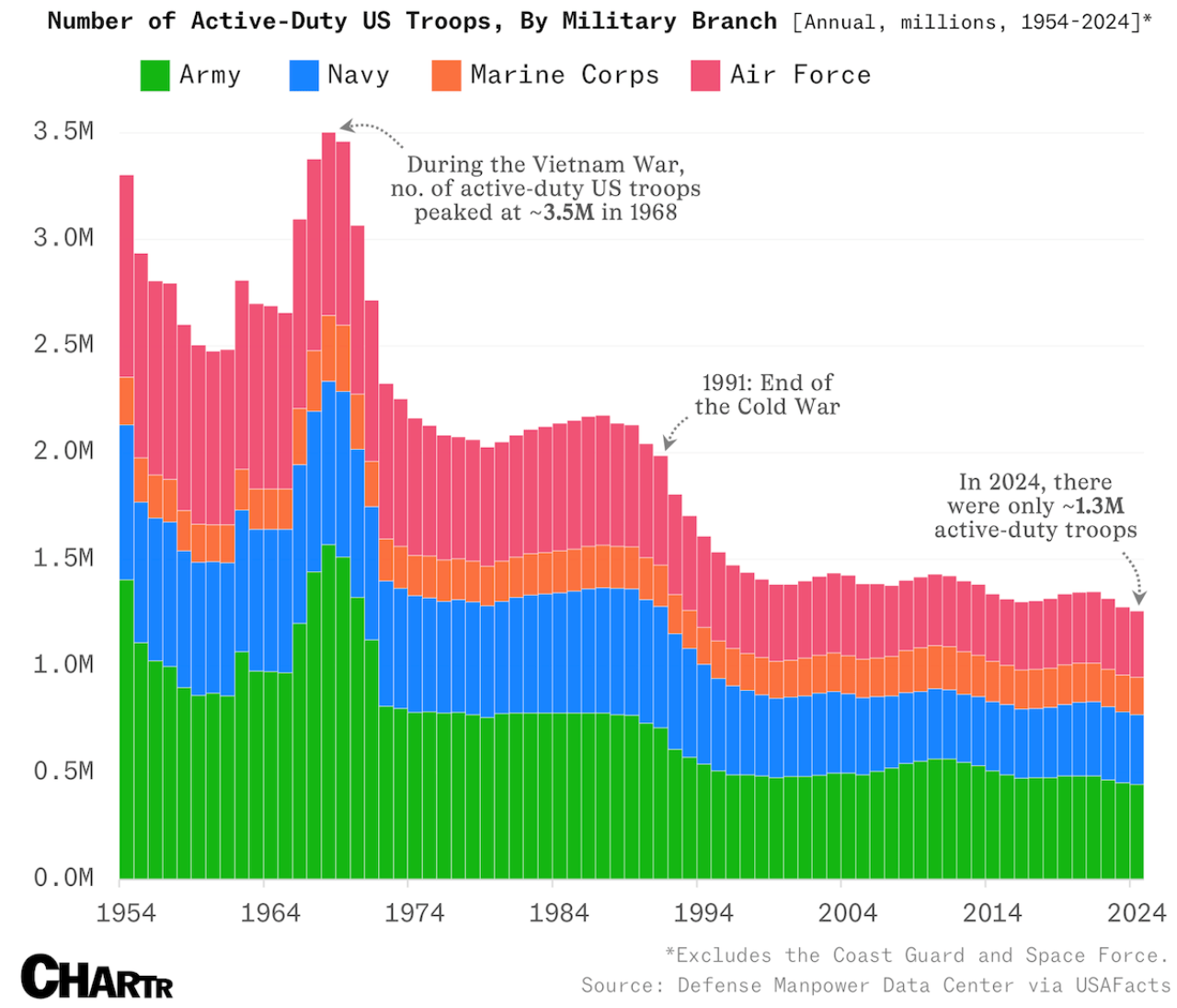 🪖 U.S. Military Active-Duty Personnel at Post-WWII Low 🦅