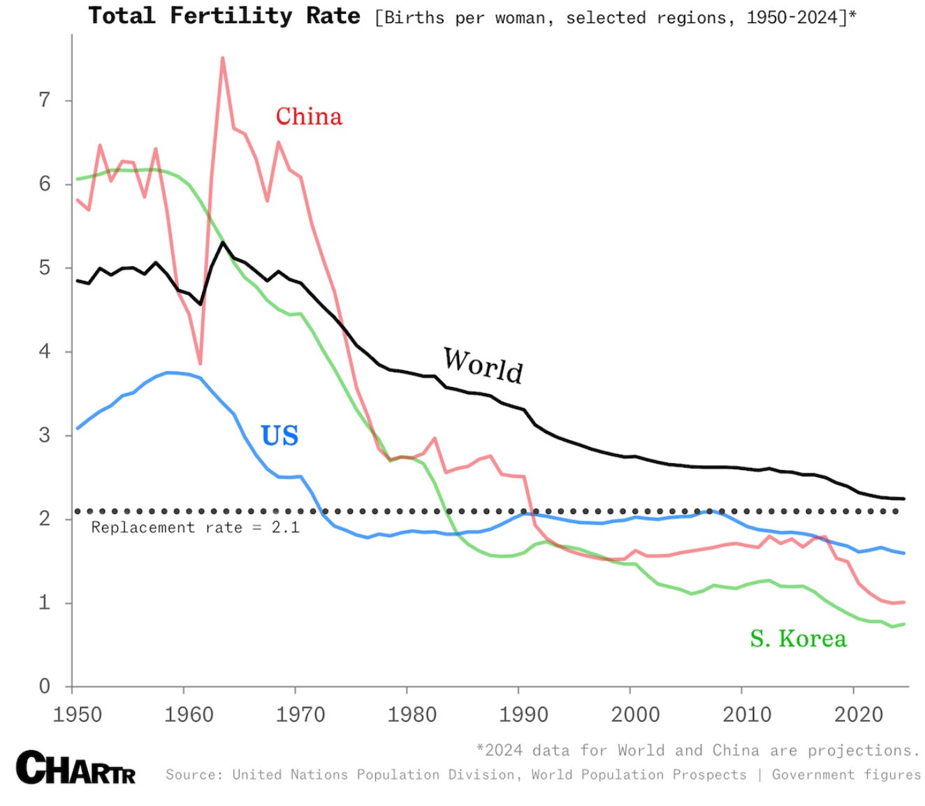After holding close to 2.1 for decades, the U.S. isn’t doing great lately: