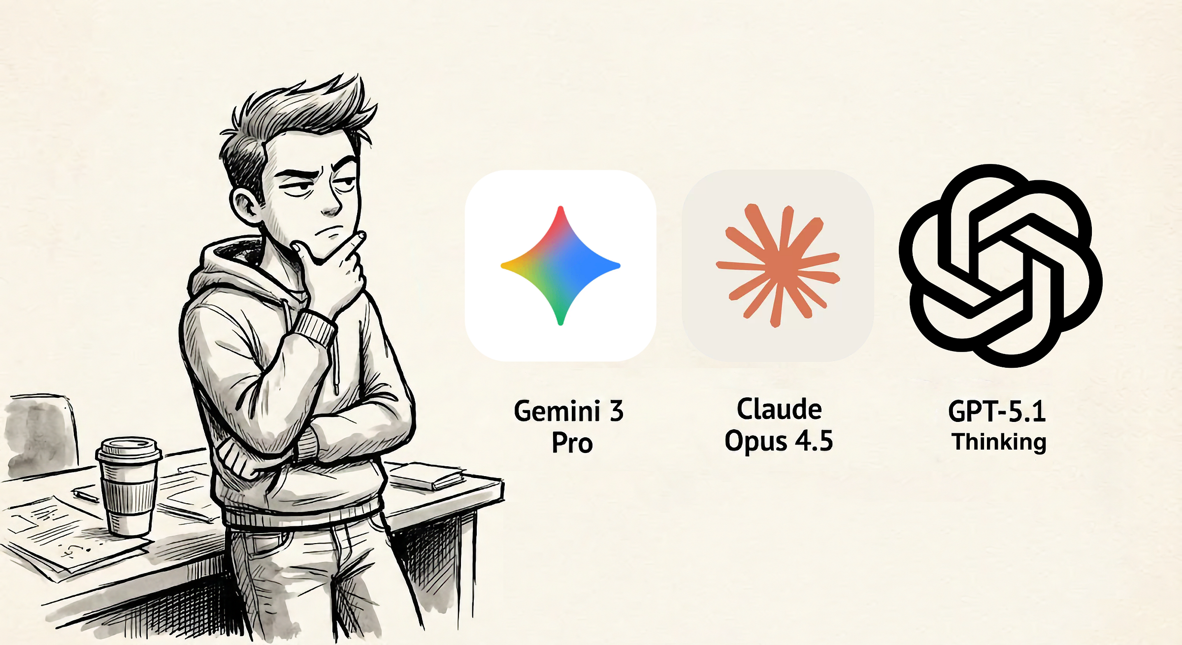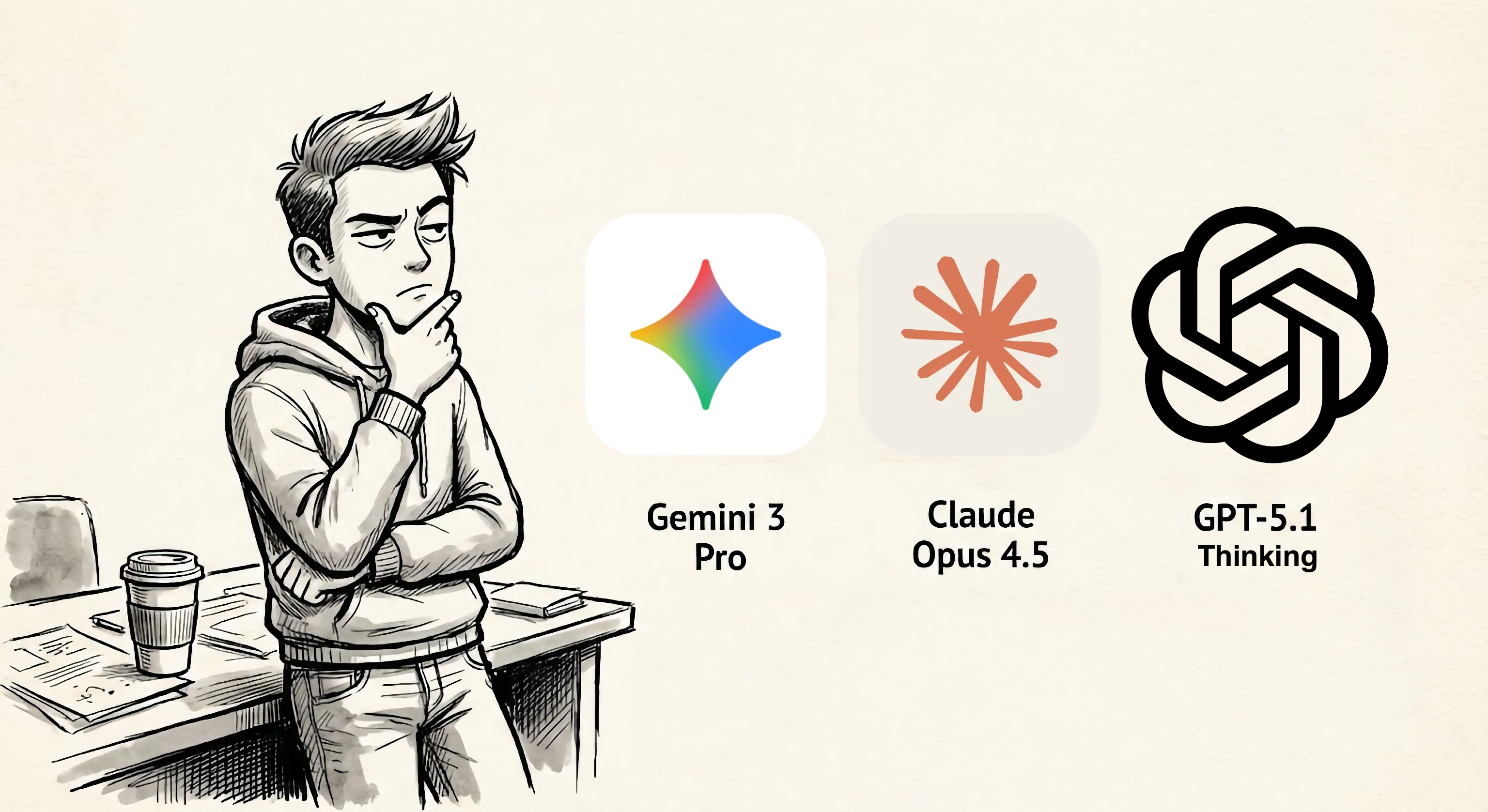The best way to compare them? Send my real-world queries to multiple models. I’ve been triple-wielding Opus 4.5, Gemini 3 Pro, and GPT-5.1 Thinking, to figure out which one I prefer.