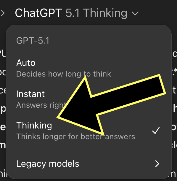 👉 If you use ChatGPT, set it to Thinking mode by default 👈