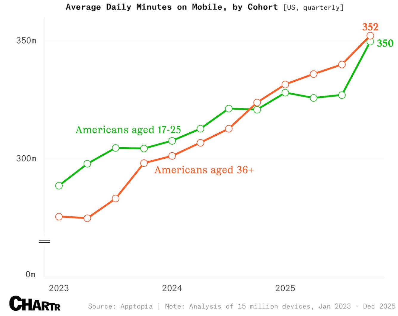 Today, “the average American spends 6.3 hours a day on their phone, up some 51 minutes from the 5.5-hour total recorded at the start of 2023.” 😮