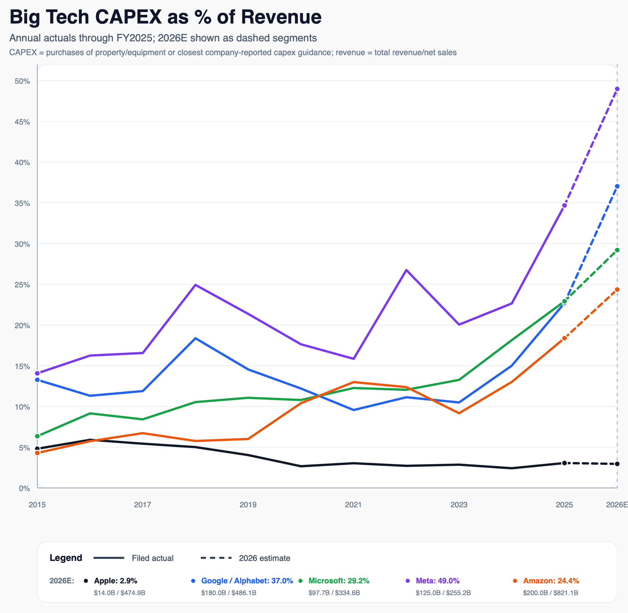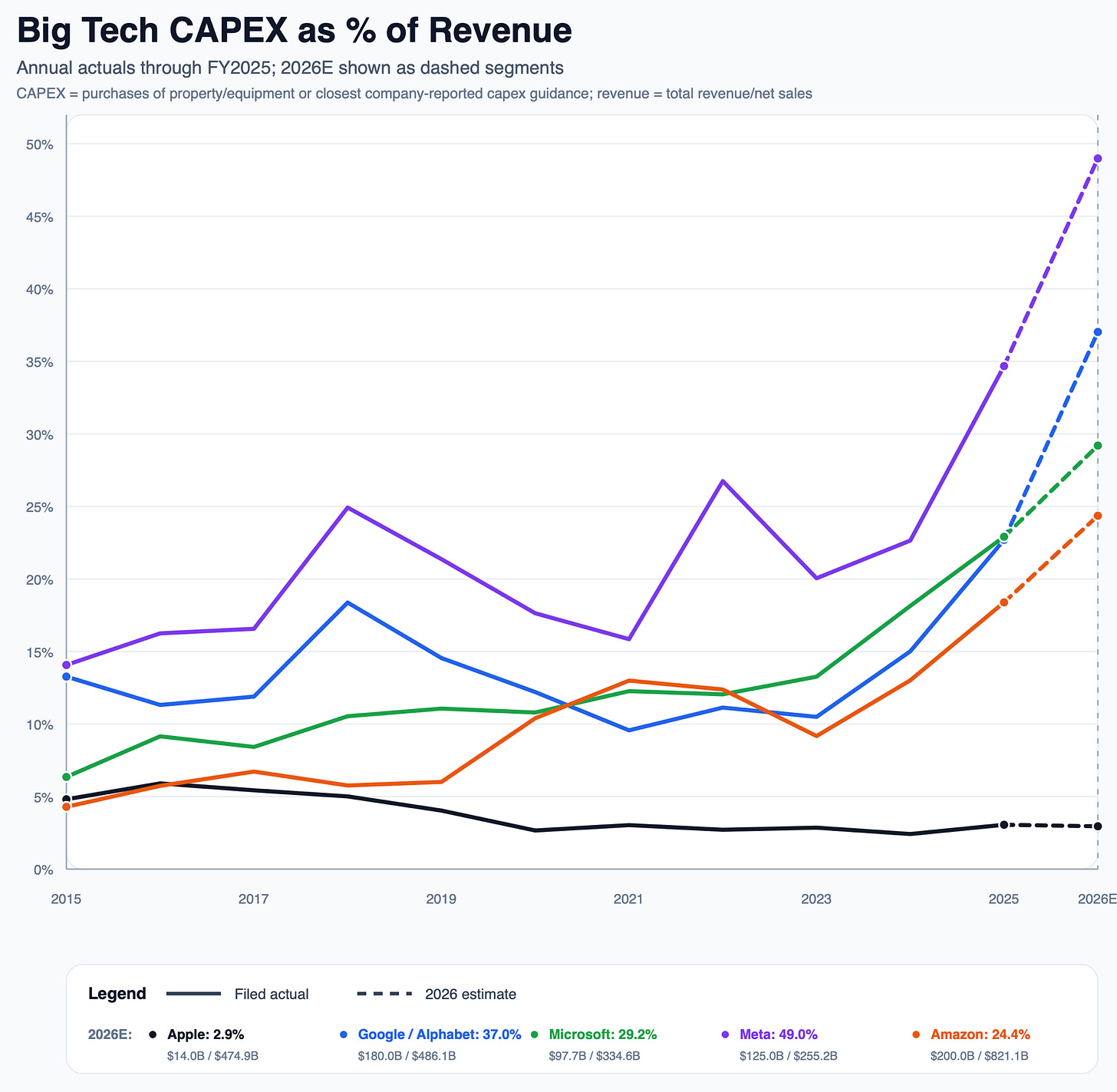 Most of the other Trillion Club companies — except Apple, as we saw above — have been plowing their cash into AI capex lately (and it’s not yet clear what kind of ROIC they’ll get over time). If they weren’t doing that, they’d probably spend most of their FCF on buybacks and dividends.