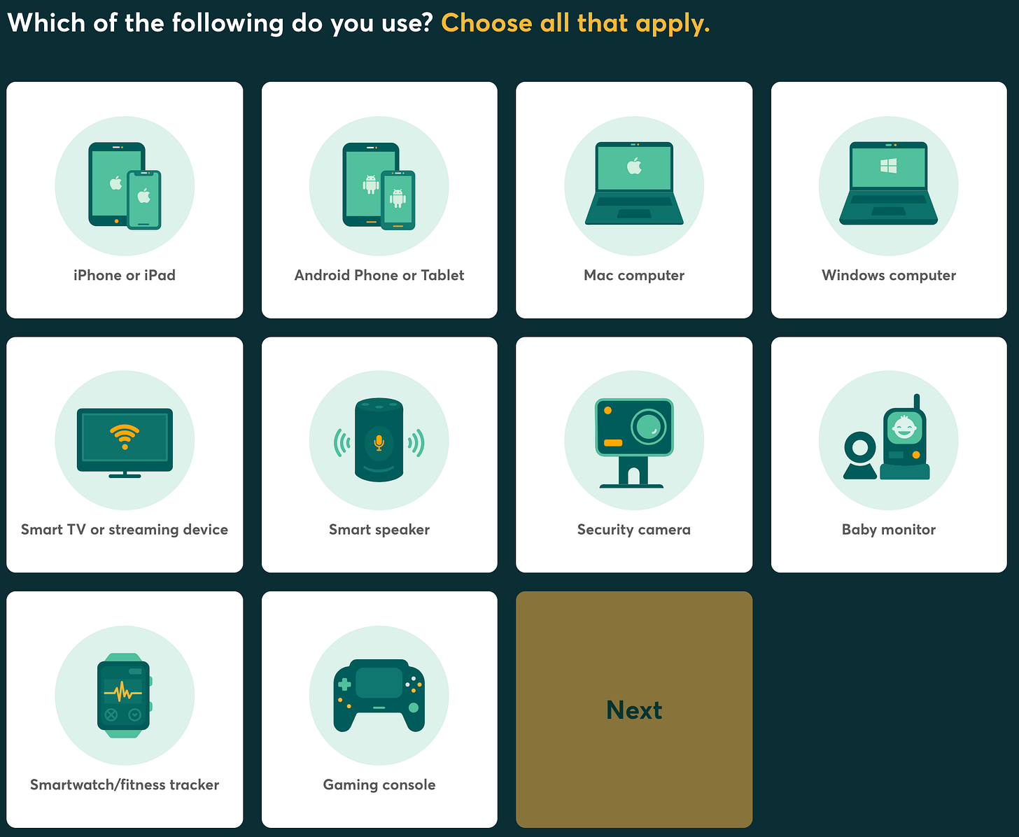 You start by picking which kinds of devices you’d like to secure, your use cases, what problems you’ve been having if any (do you just want to prevent future problems, or did you just get a ransomware attack?), etc, and then it hand-holds you into beefing up your security by doing things like turning on 2-factor authentication, changing DNS, securing web-connected baby monitors and gaming consoles, etc.