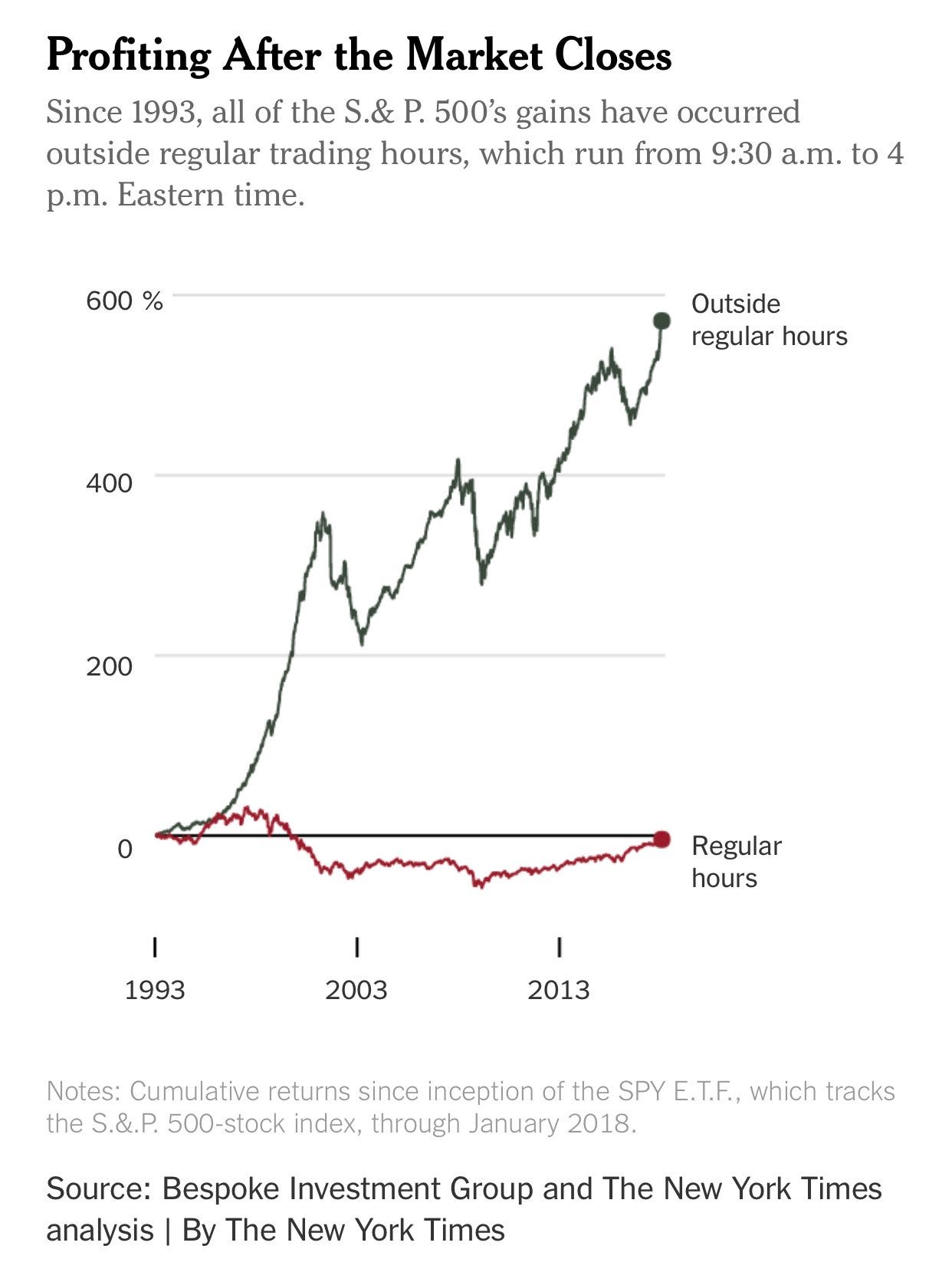 (If you’re not a financial person, what this shows is that most big stock price moves are on earning releases and big corporate news that happen before and after trading hours.) h/t Alex K.