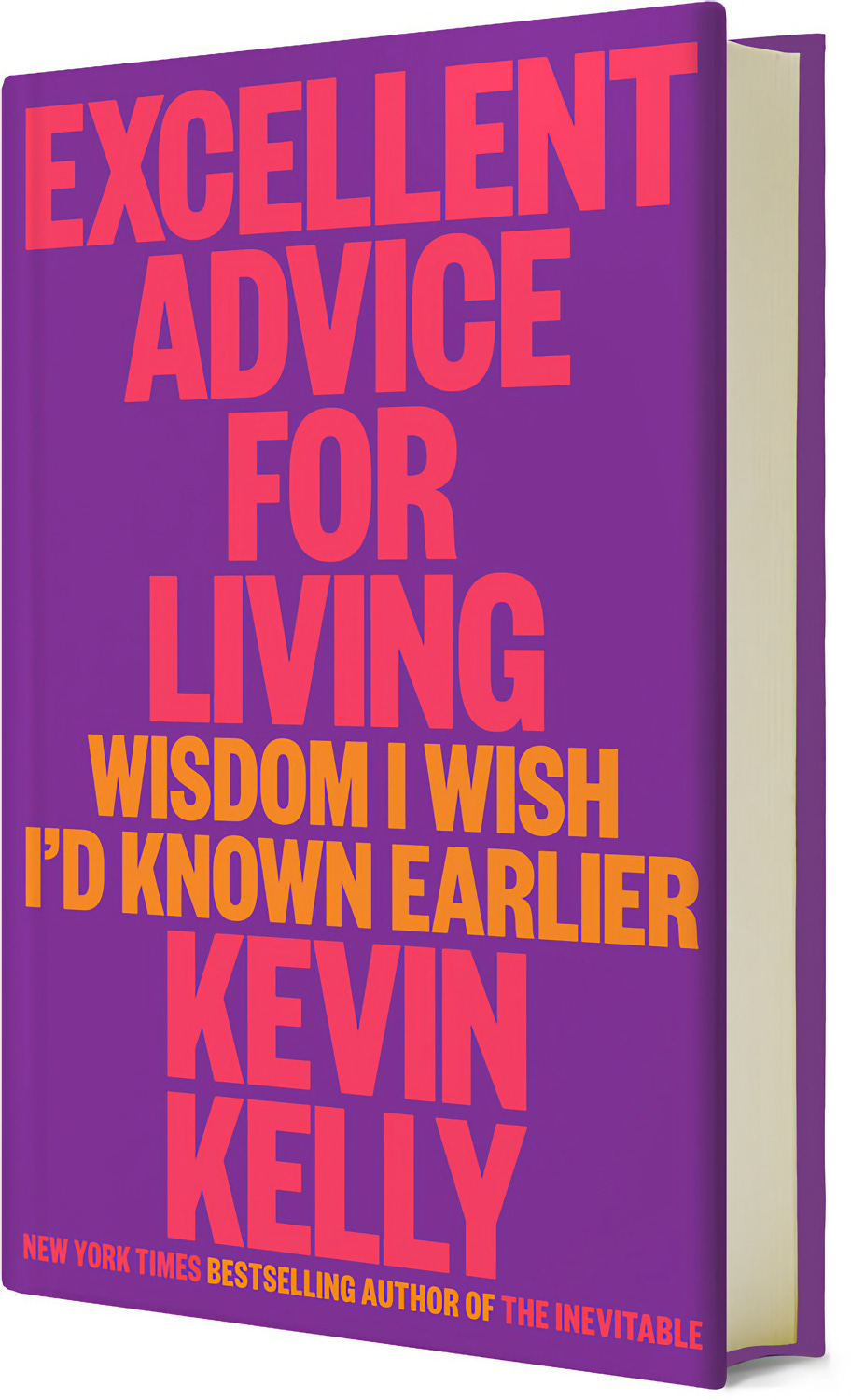 I’ve been jotting down bits of advice I wished I had known earlier in my life, and then sharing them with my children. Each one is like a tweet — a wisdom tweet. This year I have put 450 of them into a pocket-sized book, called Excellent Advice for Living. —KK
