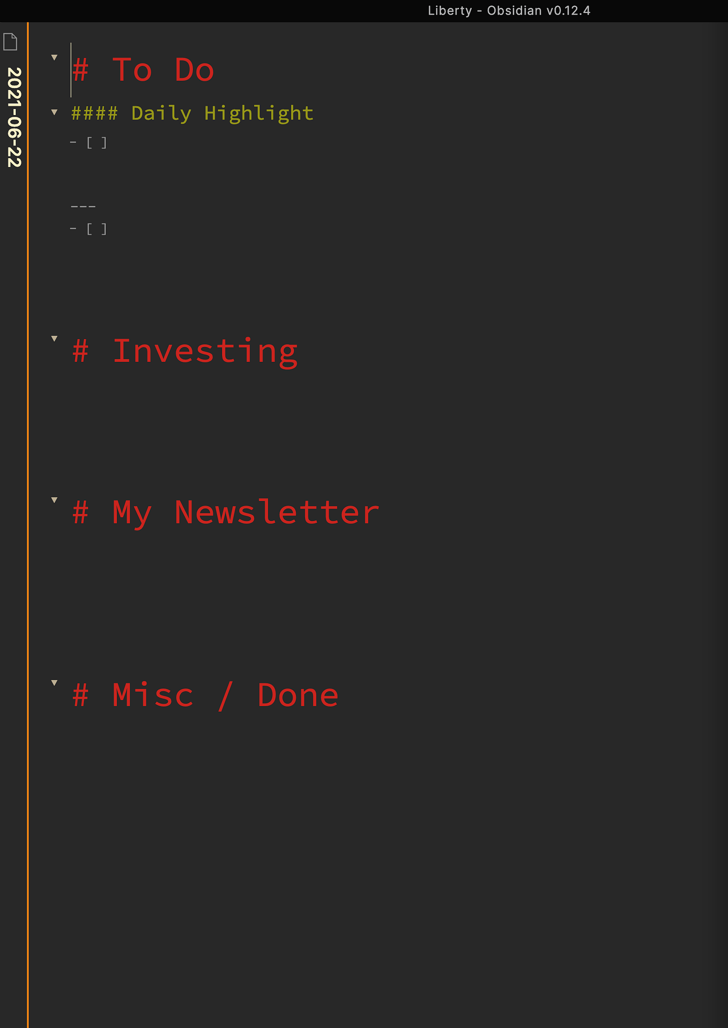 This is what my daily page template looks like. You can create your own template, and every day a new page is created using today’s date and will contain whatever you put in the template.